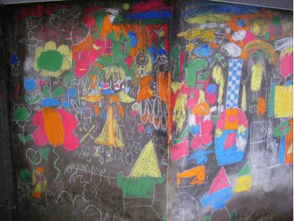 我建議可以利用間隔和牆面提供老師帶學生作塗鴉之教學,分為低、中、高三階段,讓每一屆的學生利用粉彩或顏料留下足跡。(971222訪T09)
