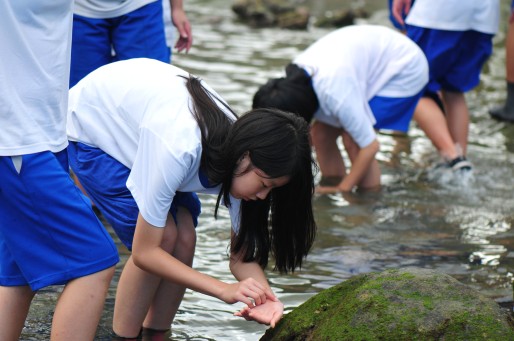 因為那一次表演的經驗後,讓我更肯定的替自己自以為是精闢的解說打上了不及格的分數,而這兩年我慢慢的減少了對於學生知識上直接的填鴨,慢慢轉變課程的方式,利用引導發現的方式讓學生增加對環境的認識,三個月前我帶著學生到基隆海洋科技博物館參觀,並下潮間帶進行觀察,簡單的利用十分鐘說明當天淨灘課程及常見生物解說後,要求回家的過程時要跟大家發表,自己當日發現的三件生物、事、在做什麼?便要學生自由觀察,此時博物館志工,便向我提出疑問「老師!我們不用事先解說一些生物嗎?」,「放心!你現在講什麼他們都不想聽,只想快去翻石頭,等一下他們就會一直問你同樣的問題了。不久便有一位學生異常興奮抓著一隻拇指指甲大小的斯氏酋婦蟹跑來「老師!我抓到大螃蟹了!!牠是什麼蟹?」,當時我心裡的OS「可惡的死小孩,我剛剛解說的就是這一種,而且剛剛我抓的那一隻比這一隻大超過十倍以上。」這兩者的差別並不在螃蟹的體型大小,主要在於他的「大螃蟹」是自己在尋找及探索中抓到的,關鍵是「自己」,那一份內心所衍生的學習能力,是發自於人類自我學習的本能,抓到的不單只是老師眼中的小螃蟹,而是學生本身堆積自然知識、學習及成就感,牠的附加收穫遠大於我的大螃蟹,因為在學生眼中牠就只是一隻體型大的生物而已,看過就算了,他的小小「大」螃蟹卻永遠活在他心中。