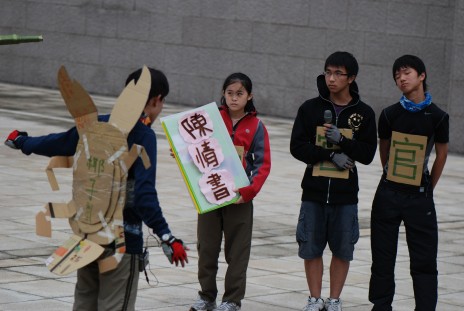 自然生態課程為什麼一定是自然老師來上課呢?在一次生態課程前我和一位任教於新竹光武國中的表演藝術科曾宇玄老師談論了這一件事,抱怨著為何多數人都認為自然生態課程必須由自然老師來執行才可以,「這就要怪你們這些自然老師了。因為在安排這些課程時,自然老師會用外力澆灌的方式,讓學生去了解那些生物,如果我們讓他們自己去喜歡去認識這些生物的特徵,那麼又何必需要自然老師來上課呢?」,這次對談讓我有很大的省思,因為是我們設計了一大串解說的課程,當然會讓大多數的老師反映:「因為你們才認識那些動、植物呀!不然誰來解說?」,於是我請曾老師在為我設計的課程裡,增加了「自然表演生態課程」,請參加的學生自行編寫劇本,主動上網了解各項生物的特徵並製作道具,利用表演的方式來解『解說』給當時在現場的每一位觀眾,(此時,我並不是老師而是一位發現新知識的學生。)當這些課程結束後,每一位表演者,因為關心環境、愛惜生物而內化出來的學習及解說能力,才是最具有穿透人心的學習。