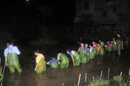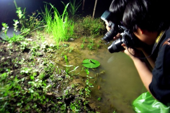 生態觀察的難度高,夜間生態觀察的難度則又更高,但是這種感動與體驗對於孩子的衝擊又比白天更加強烈。因為是在晚上攝影,所以能拍到許多不同於白天的景象,更可以拍到白天看不到的景象,像是水蠆的羽化過程。所以夜拍對我和學生來說,都是非常特別的感受。或許可以這麼說:夜間的生態攝影記錄,也不只是為了拍照而已。最令孩子難忘的,是在晚上穿著青蛙裝,帶著單眼相機和攝影機,走入冰涼的水中。那瞬間全身所感受到的溫度,才是孩子們對於童年、對於學習、對於生物的最珍貴回憶。