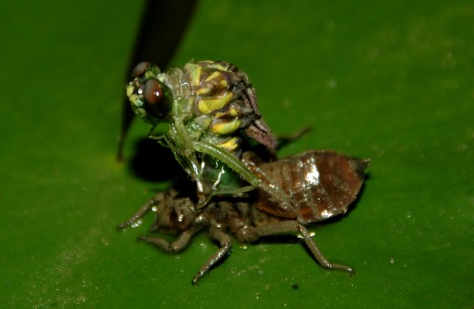 學生夜間攝影作品-粗鉤春蜓的羽化 學生夜間攝影作品-麻斑晏蜓的羽化