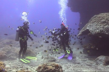 B. 國外調查發現,導潛人員的干預會降低潛水者水下觸碰機率( Barker and Roberts, 2004),而台灣東北角潛水者水下行為研究發現,導潛的干預對於潛水者手主動觸碰總次數、定點拍攝總次數、定點停留總次數等行為,有明顯減少的現象(羅, 2010)。專業的導潛人員是水下導航與觀光潛水活動的帶領者,管理者透過導潛的培訓可以降低潛水遊憩者對水下生態的觸碰行為,進而達到維護生態環境及遊憩安全的目的。