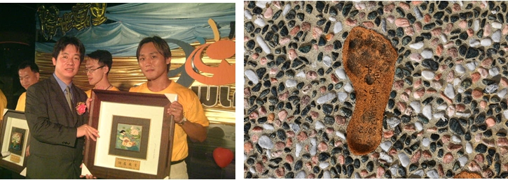 ※賴院長於90週年畢業晚會頒獎給本校優良教師/賴院長腳模鑲嵌(20030620)