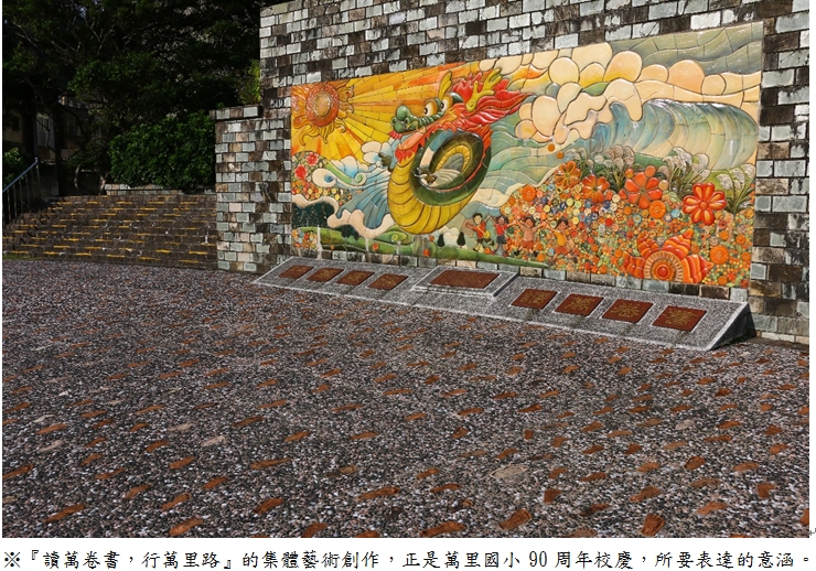 公共藝術的設置為學校空間帶來了豐富的變化和師生全新的認知與感受,尤其在萬里鄉,這還是頭一遭也是師生和藝術家第一次心靈交會的作品,不但讓全校師生認識公共藝術也親手參與製作的過程,相信大家會更珍惜它,因為它蘊藏六百多位萬里師生和藝術家共同的心血和結晶。